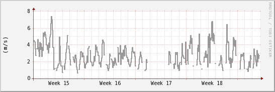 Poniższe wykresy obrazują wyniki pomiarów stacji do dnia 2003-05-08. Z boku znajdują są: wartość średnia, maksymalna oraz minimalna. Każdy wykres jest odnośnikiem do strony przedstawiającej pomiary danego parametru meteorolgicznego z ubiegłego dnia, tygodnia, miesiąca i roku (od daty dzisiejszej).