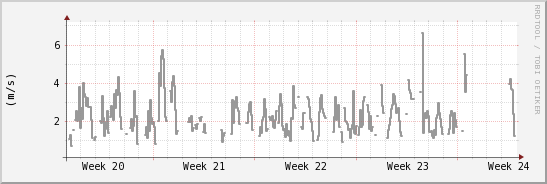 Poniższe wykresy obrazują wyniki pomiarów stacji do dnia 2003-06-14. Z boku znajdują są: wartość średnia, maksymalna oraz minimalna. Każdy wykres jest odnośnikiem do strony przedstawiającej pomiary danego parametru meteorolgicznego z ubiegłego dnia, tygodnia, miesiąca i roku (od daty dzisiejszej).