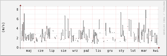 Poniższe wykresy obrazują wyniki pomiarów stacji do dnia 2004-04-24. Z boku znajdują są: wartość średnia, maksymalna oraz minimalna. Każdy wykres jest odnośnikiem do strony przedstawiającej pomiary danego parametru meteorolgicznego z ubiegłego dnia, tygodnia, miesiąca i roku (od daty dzisiejszej).