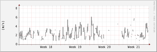 Poniższe wykresy obrazują wyniki pomiarów stacji do dnia 2004-05-24. Z boku znajdują są: wartość średnia, maksymalna oraz minimalna. Każdy wykres jest odnośnikiem do strony przedstawiającej pomiary danego parametru meteorolgicznego z ubiegłego dnia, tygodnia, miesiąca i roku (od daty dzisiejszej).