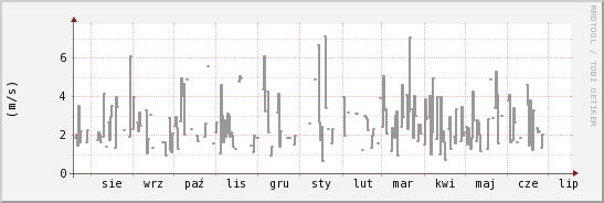 Poniższe wykresy obrazują wyniki pomiarów stacji do dnia 2004-07-20. Z boku znajdują są: wartość średnia, maksymalna oraz minimalna. Każdy wykres jest odnośnikiem do strony przedstawiającej pomiary danego parametru meteorolgicznego z ubiegłego dnia, tygodnia, miesiąca i roku (od daty dzisiejszej).