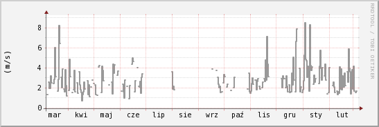 Poniższe wykresy obrazują wyniki pomiarów stacji do dnia 2005-03-07. Z boku znajdują są: wartość średnia, maksymalna oraz minimalna. Każdy wykres jest odnośnikiem do strony przedstawiającej pomiary danego parametru meteorolgicznego z ubiegłego dnia, tygodnia, miesiąca i roku (od daty dzisiejszej).