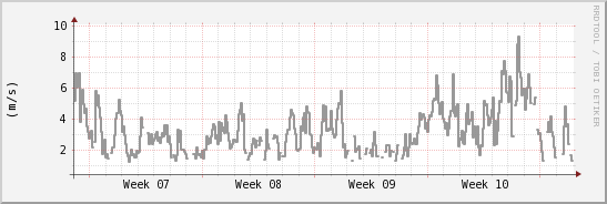 Poniższe wykresy obrazują wyniki pomiarów stacji do dnia 2005-03-14. Z boku znajdują są: wartość średnia, maksymalna oraz minimalna. Każdy wykres jest odnośnikiem do strony przedstawiającej pomiary danego parametru meteorolgicznego z ubiegłego dnia, tygodnia, miesiąca i roku (od daty dzisiejszej).