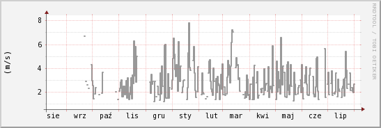 Poniższe wykresy obrazują wyniki pomiarów stacji do dnia 2005-08-09. Z boku znajdują są: wartość średnia, maksymalna oraz minimalna. Każdy wykres jest odnośnikiem do strony przedstawiającej pomiary danego parametru meteorolgicznego z ubiegłego dnia, tygodnia, miesiąca i roku (od daty dzisiejszej).