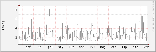 Poniższe wykresy obrazują wyniki pomiarów stacji do dnia 2006-09-21. Z boku znajdują są: wartość średnia, maksymalna oraz minimalna. Każdy wykres jest odnośnikiem do strony przedstawiającej pomiary danego parametru meteorolgicznego z ubiegłego dnia, tygodnia, miesiąca i roku (od daty dzisiejszej).