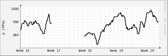 Poniższe wykresy obrazują wyniki pomiarów stacji do dnia 2005-05-22. Z boku znajdują są: wartość średnia, maksymalna oraz minimalna. Każdy wykres jest odnośnikiem do strony przedstawiającej pomiary danego parametru meteorolgicznego z ubiegłego dnia, tygodnia, miesiąca i roku (od daty dzisiejszej).