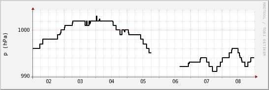 Poniższe wykresy obrazują wyniki pomiarów stacji do dnia 2005-09-10. Z boku znajdują są: wartość średnia, maksymalna oraz minimalna. Każdy wykres jest odnośnikiem do strony przedstawiającej pomiary danego parametru meteorolgicznego z ubiegłego dnia, tygodnia, miesiąca i roku (od daty dzisiejszej).