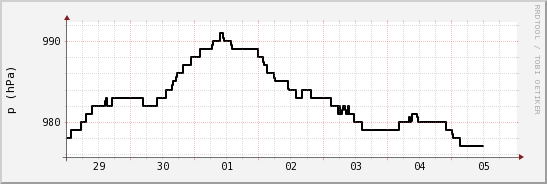 Poniższe wykresy obrazują wyniki pomiarów stacji do dnia 2005-12-07. Z boku znajdują są: wartość średnia, maksymalna oraz minimalna. Każdy wykres jest odnośnikiem do strony przedstawiającej pomiary danego parametru meteorolgicznego z ubiegłego dnia, tygodnia, miesiąca i roku (od daty dzisiejszej).