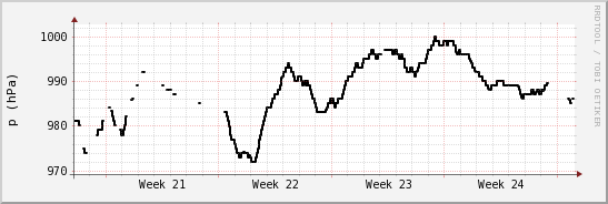Poniższe wykresy obrazują wyniki pomiarów stacji do dnia 2006-06-21. Z boku znajdują są: wartość średnia, maksymalna oraz minimalna. Każdy wykres jest odnośnikiem do strony przedstawiającej pomiary danego parametru meteorolgicznego z ubiegłego dnia, tygodnia, miesiąca i roku (od daty dzisiejszej).