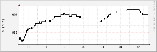 Poniższe wykresy obrazują wyniki pomiarów stacji do dnia 2007-08-07. Z boku znajdują są: wartość średnia, maksymalna oraz minimalna. Każdy wykres jest odnośnikiem do strony przedstawiającej pomiary danego parametru meteorolgicznego z ubiegłego dnia, tygodnia, miesiąca i roku (od daty dzisiejszej).