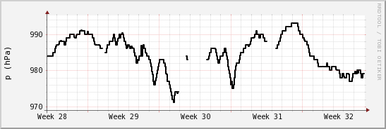 Poniższe wykresy obrazują wyniki pomiarów stacji do dnia 2007-08-13. Z boku znajdują są: wartość średnia, maksymalna oraz minimalna. Każdy wykres jest odnośnikiem do strony przedstawiającej pomiary danego parametru meteorolgicznego z ubiegłego dnia, tygodnia, miesiąca i roku (od daty dzisiejszej).