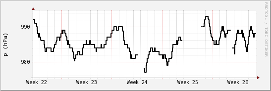 Poniższe wykresy obrazują wyniki pomiarów stacji do dnia 2008-06-30. Z boku znajdują są: wartość średnia, maksymalna oraz minimalna. Każdy wykres jest odnośnikiem do strony przedstawiającej pomiary danego parametru meteorolgicznego z ubiegłego dnia, tygodnia, miesiąca i roku (od daty dzisiejszej).