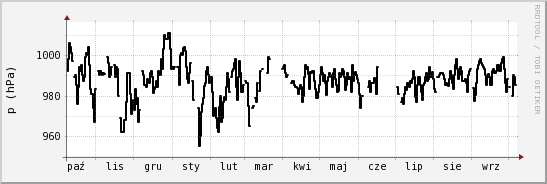 Poniższe wykresy obrazują wyniki pomiarów stacji do dnia 2009-10-09. Z boku znajdują są: wartość średnia, maksymalna oraz minimalna. Każdy wykres jest odnośnikiem do strony przedstawiającej pomiary danego parametru meteorolgicznego z ubiegłego dnia, tygodnia, miesiąca i roku (od daty dzisiejszej).