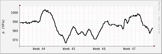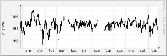 Poniższe wykresy obrazują wyniki pomiarów stacji do dnia 2009-11-26. Z boku znajdują są: wartość średnia, maksymalna oraz minimalna. Każdy wykres jest odnośnikiem do strony przedstawiającej pomiary danego parametru meteorolgicznego z ubiegłego dnia, tygodnia, miesiąca i roku (od daty dzisiejszej).