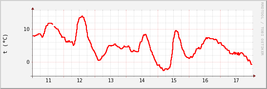 Poniższe wykresy obrazują wyniki pomiarów stacji do dnia 2005-11-19. Z boku znajdują są: wartość średnia, maksymalna oraz minimalna. Każdy wykres jest odnośnikiem do strony przedstawiającej pomiary danego parametru meteorolgicznego z ubiegłego dnia, tygodnia, miesiąca i roku (od daty dzisiejszej).