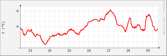 Temperatura powietrza - start wykresu 2005-11-23 00:00:00+01 (wykres tygodniowy)